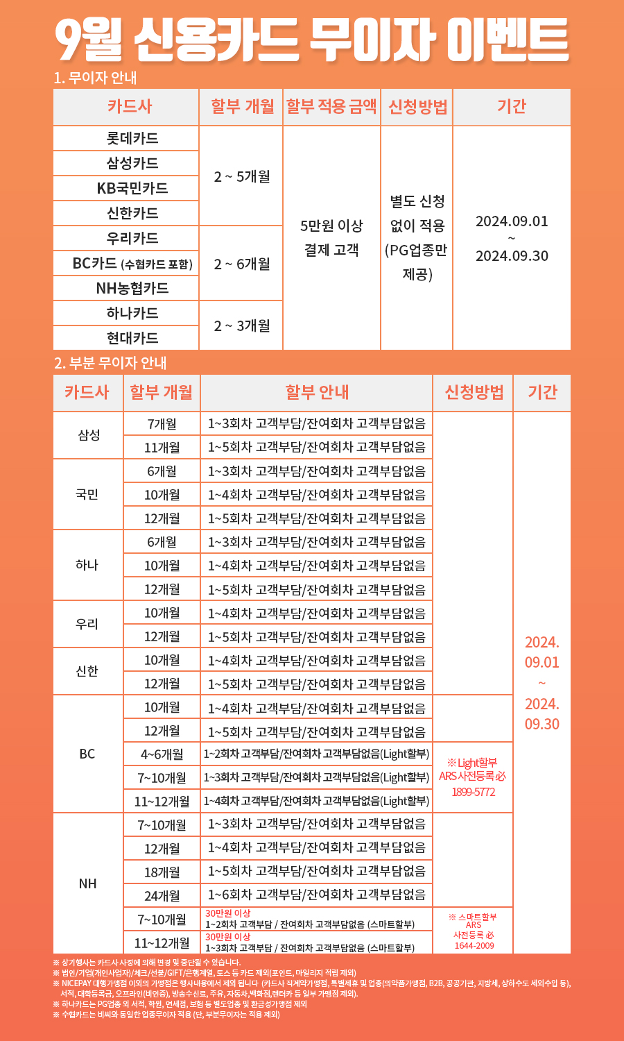 [공지] 2024년 9월 신용카드 무이자 및 부분 무이자 할부 안내
