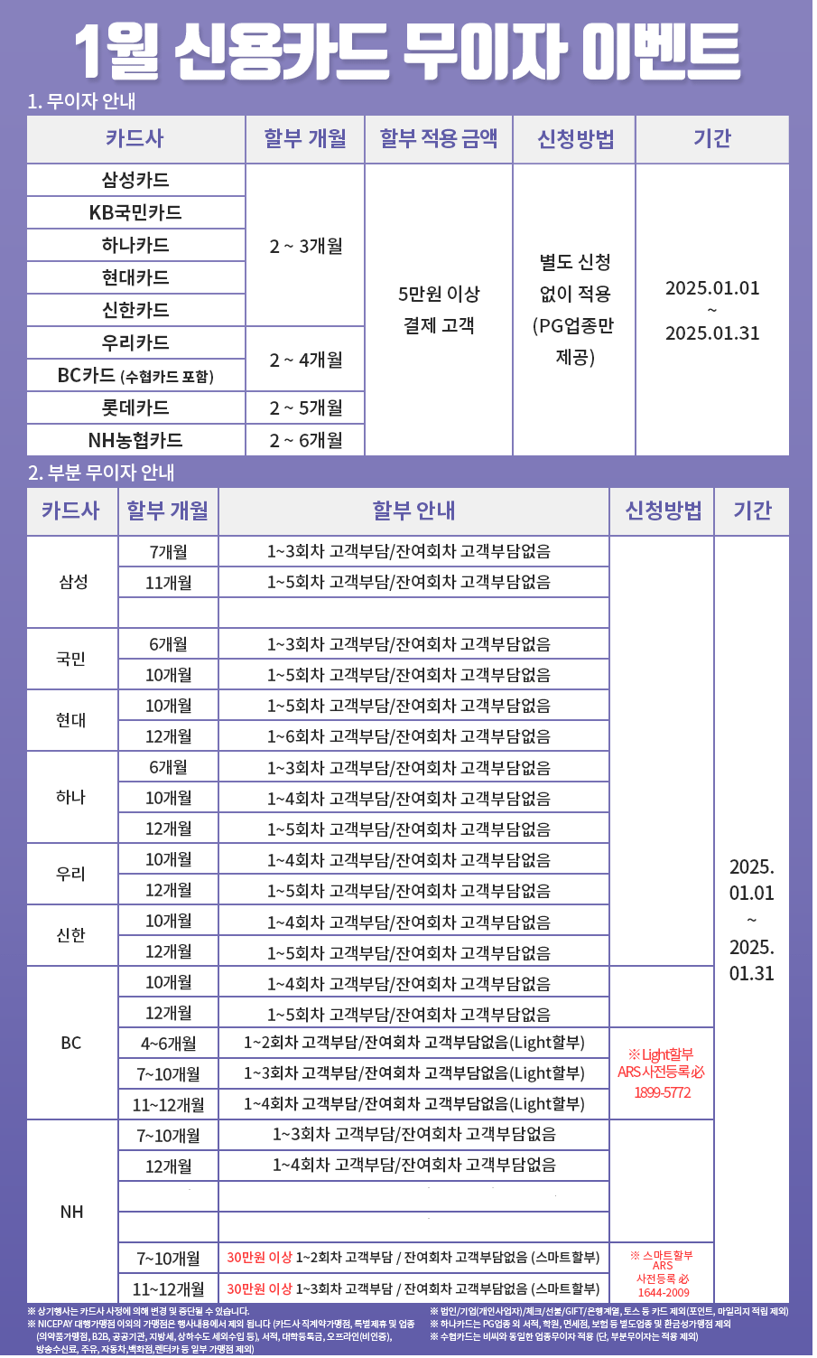 [공지] 2025년 1월 신용카드 무이자 및 부분 무이자 할부 안내