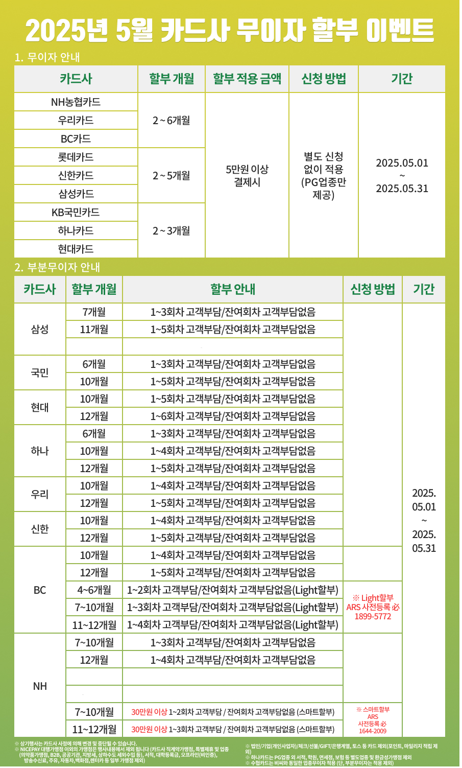 [공지] 2025년 5월 신용카드 무이자 및 부분 무이자 할부 안내