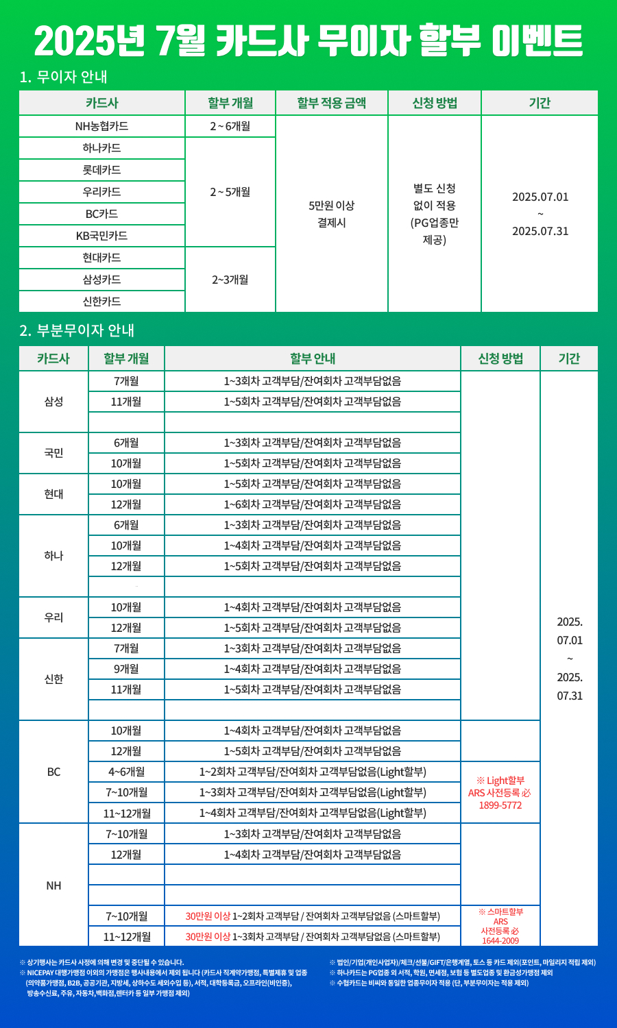[공지] 2025년 7월 신용카드 무이자 및 부분 무이자 할부 안내