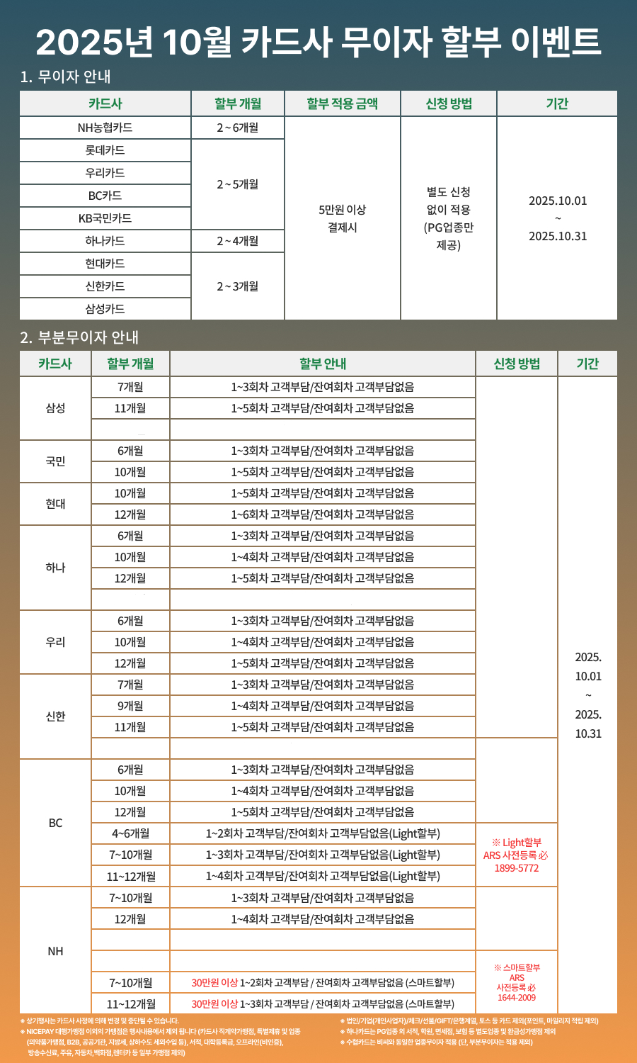 [공지] 2025년 10월 신용카드 무이자 및 부분 무이자 할부 안내