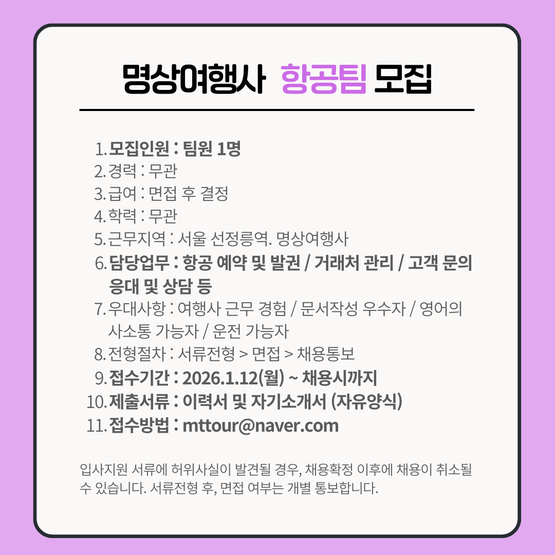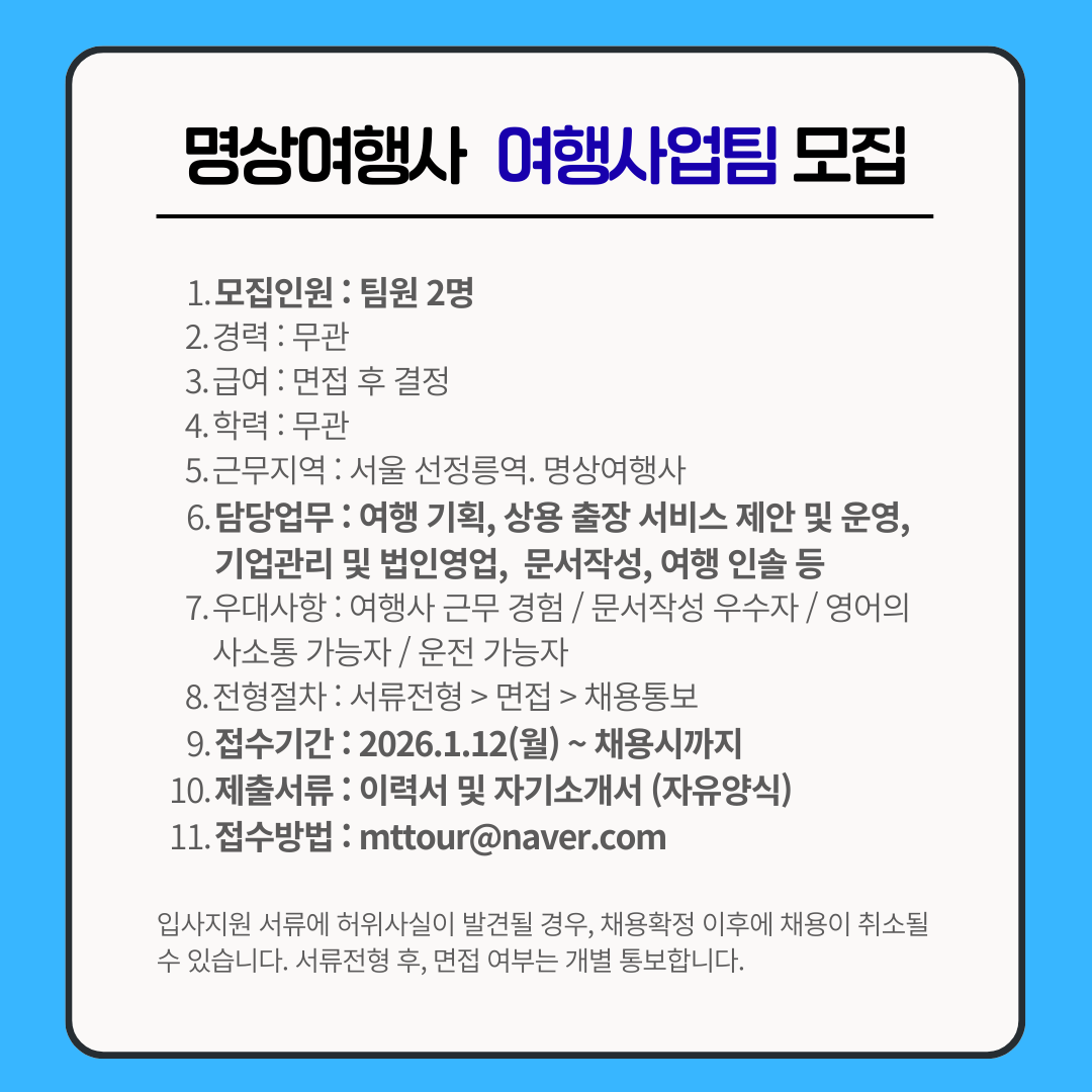 [인재채용] 명상여행사와 함께 하실 소중한 인재를 모십니다.