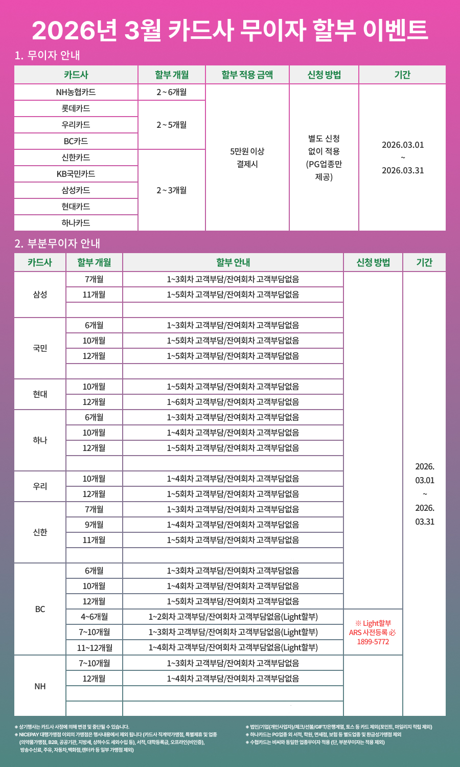 [공지] 2026년 3월 신용카드 무이자 및 부분 무이자 할부 안내